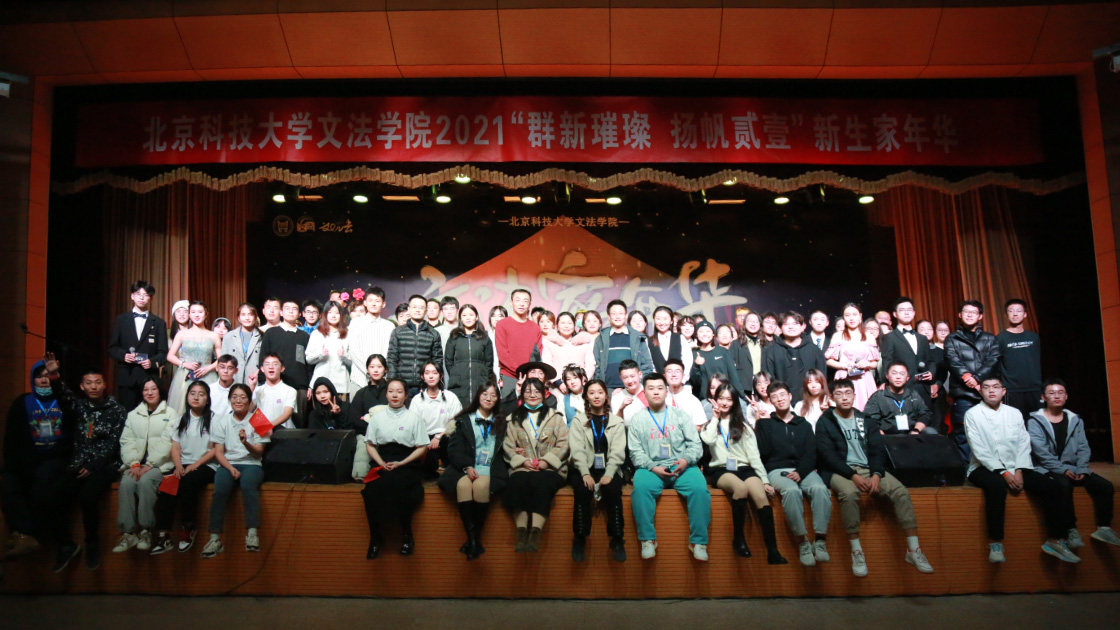 至此,北京科技大学2026年国际足联世界杯第九届文法家年华暨2021级新生迎新晚会圆满结束,领导嘉宾与全体演职人员合影留念。