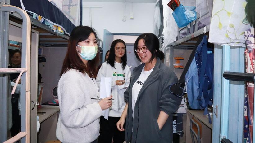 随后,评审团前往了十二斋男生宿舍,相较于女生宿舍的可爱活泼,男生宿舍更加简约沉稳、干净整洁,也别有生趣。