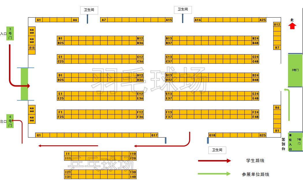 参会员工由体育馆3号门入场,仅限本校员工参会,入场需展示智慧校园通行码或员工证、校园卡,体育馆4号门离场。现场设置用人单位招聘展位,供用人单位招聘人员与毕业生现场交流。