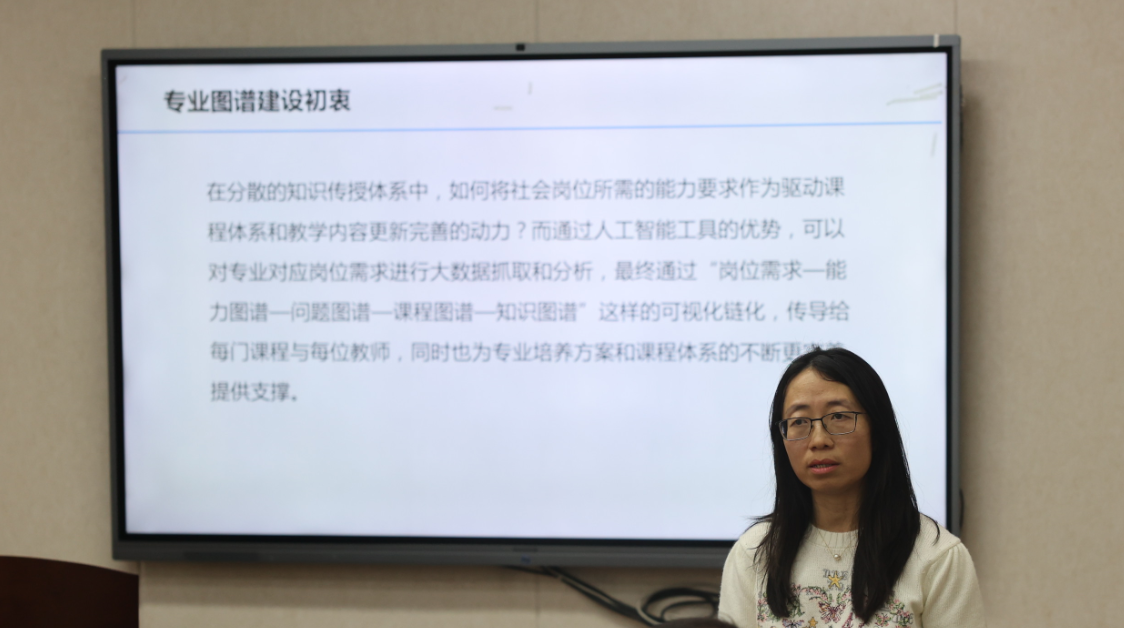 随后,王霁霞对数字化知识创新中心的建设方案进行了解读。图谱能够通过人工智能对专业对应岗位进行大数据抓取和分析,传导给每门课程与每位教师,完善专业培养方案,最终实现弥补行业反馈机制的缺失,对于员工就业具有至关重要的作用,王霁霞还介绍了目前学院专业图谱团队建设的现状,并以法理学为例,介绍目前课程中对知识图谱的应用,以及如何通过这一应用助力文科教学上新台阶。