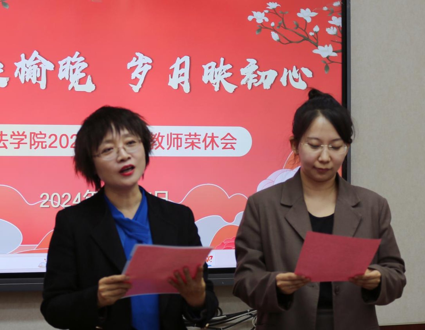 随后,李虹介绍了本次荣休会的前期准备、采访和收集系所(中心)师生对荣休教师的祝福以及寄语等工作。王霁霞和法律系党支部书记徐铭勋逐一诵读了师生们对荣休教师的感言与祝福,暖心的文字展现了三位荣休教师从教生涯的点滴,生动描绘了一幅荣休教师在人才培养、团队建设和学院发展的热土上挥洒满腔热血的画卷。