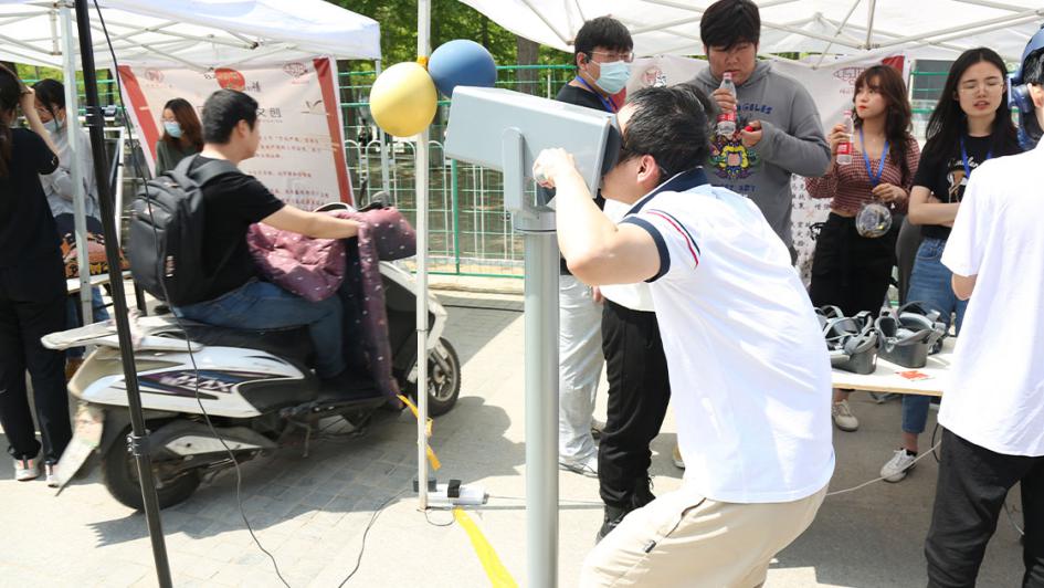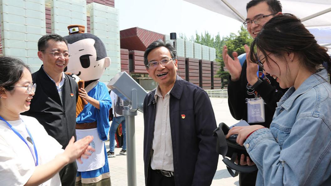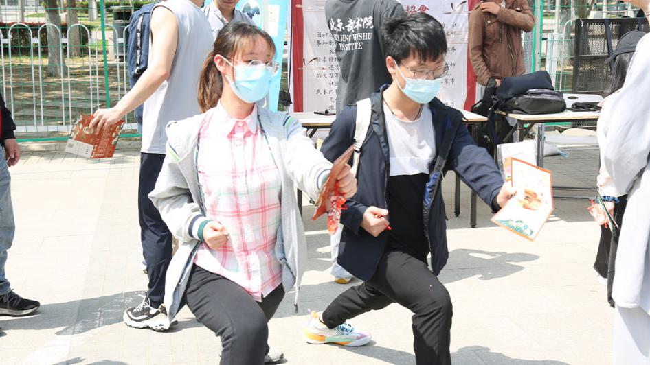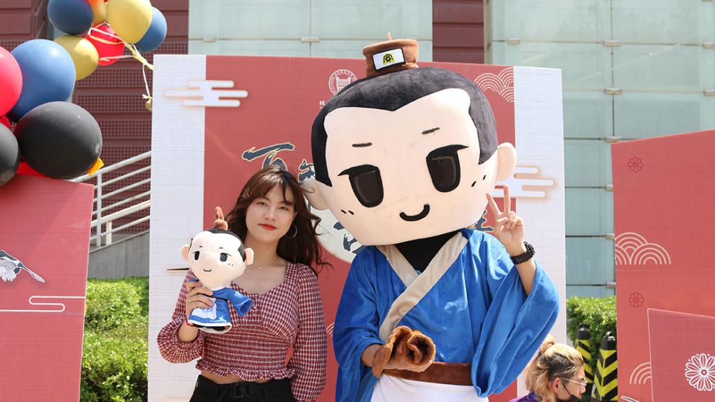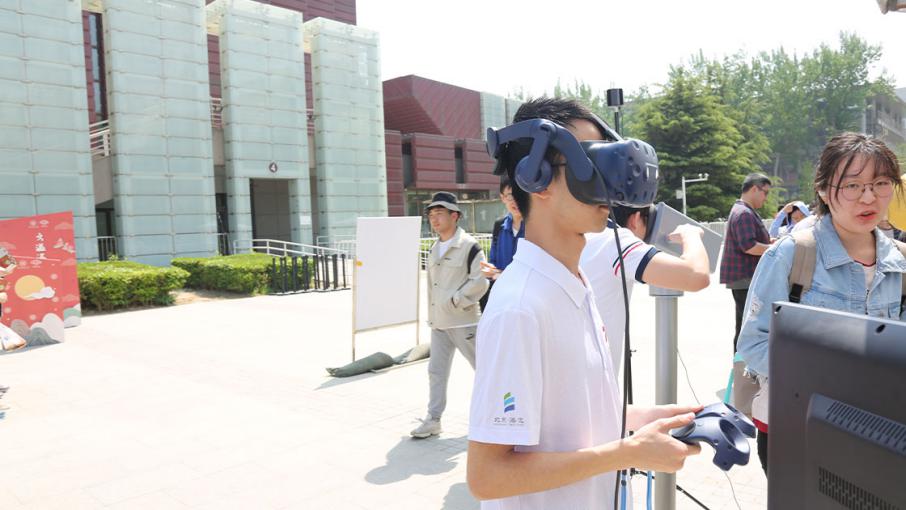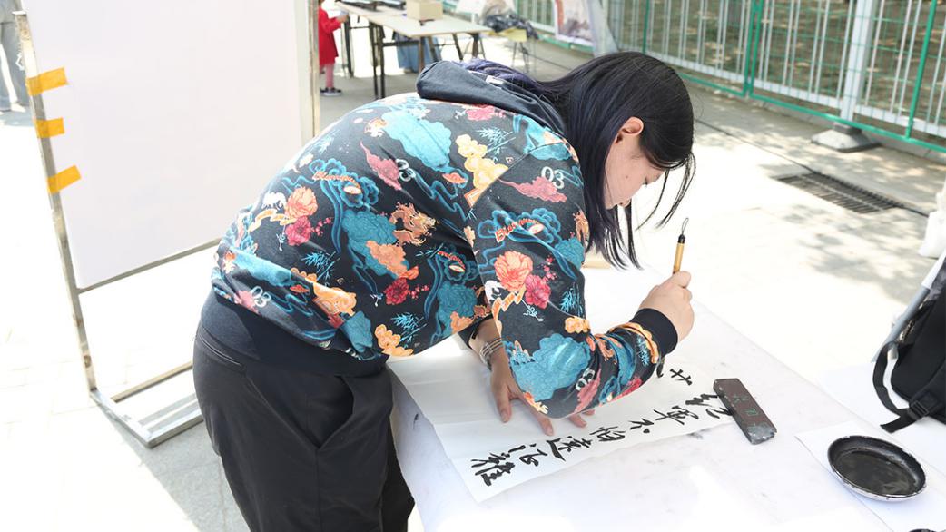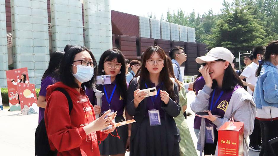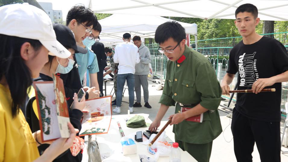 开幕仪式后,游园互动环节正式开始。领导、老师和同学们前往社团展位参观游览,体验妙趣横生的各项活动。本届传统文化节开幕游园活动在形式、内容上均进行了创新。在形式上,主题活动参与者需以“船票”入场,寓意红船精神,融入VR体验现代科技元素;在内容上,还增加了党史、校史等特色内容,如翰墨情书画协会处的“年轻同志”帮助老红军完成《七律长征》的书写等等。