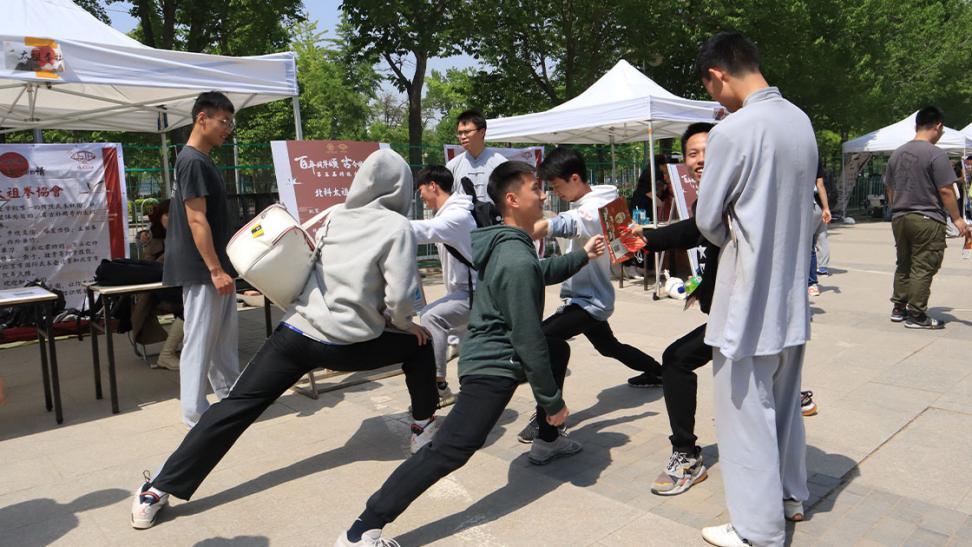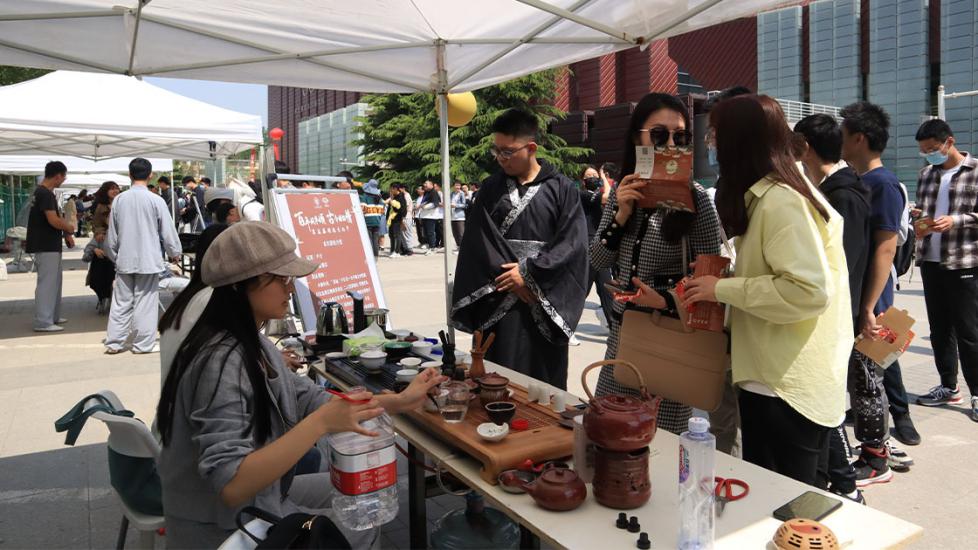 开幕式以“百年风华颂,古今国韵情”为主题,现场主题活动丰富多彩,校内十余个社团参与活动,吸引众多同学前来参与。
