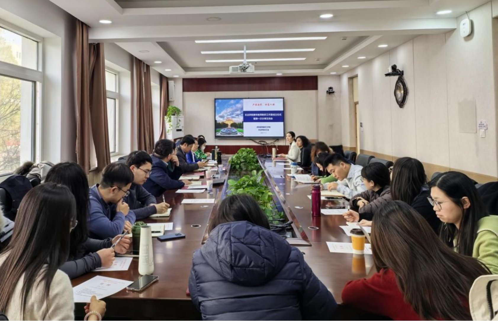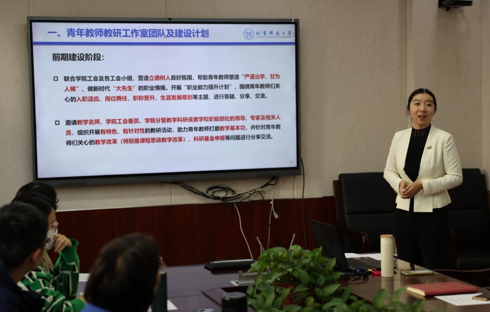 青年教师教研工作室负责人王艾老师介绍了工作室的建设计划以及青年教师教学基本功比赛的相关情况,并分享了自身经验。