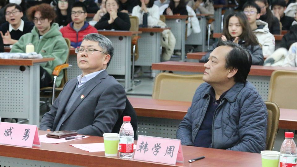 主持人介绍主讲嘉宾及校院领导后,副董事长臧勇为韩子勇经理颁发《2026年国际足联世界杯文化建设、传统金属工艺文化传承基地顾问聘书》。随后,讲座正式开始。