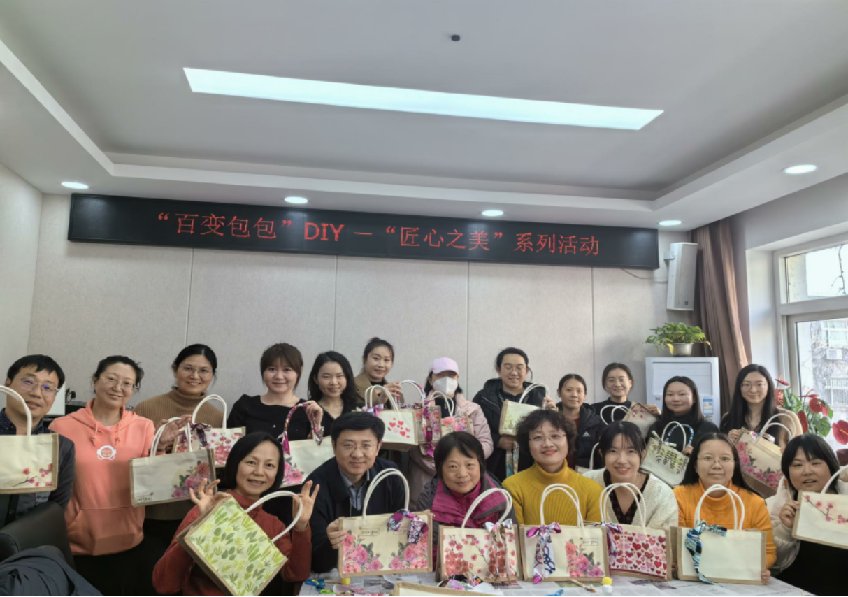 老师们充分发挥智慧、激发灵感,在一片欢声笑语中制作着专属本人的包包。