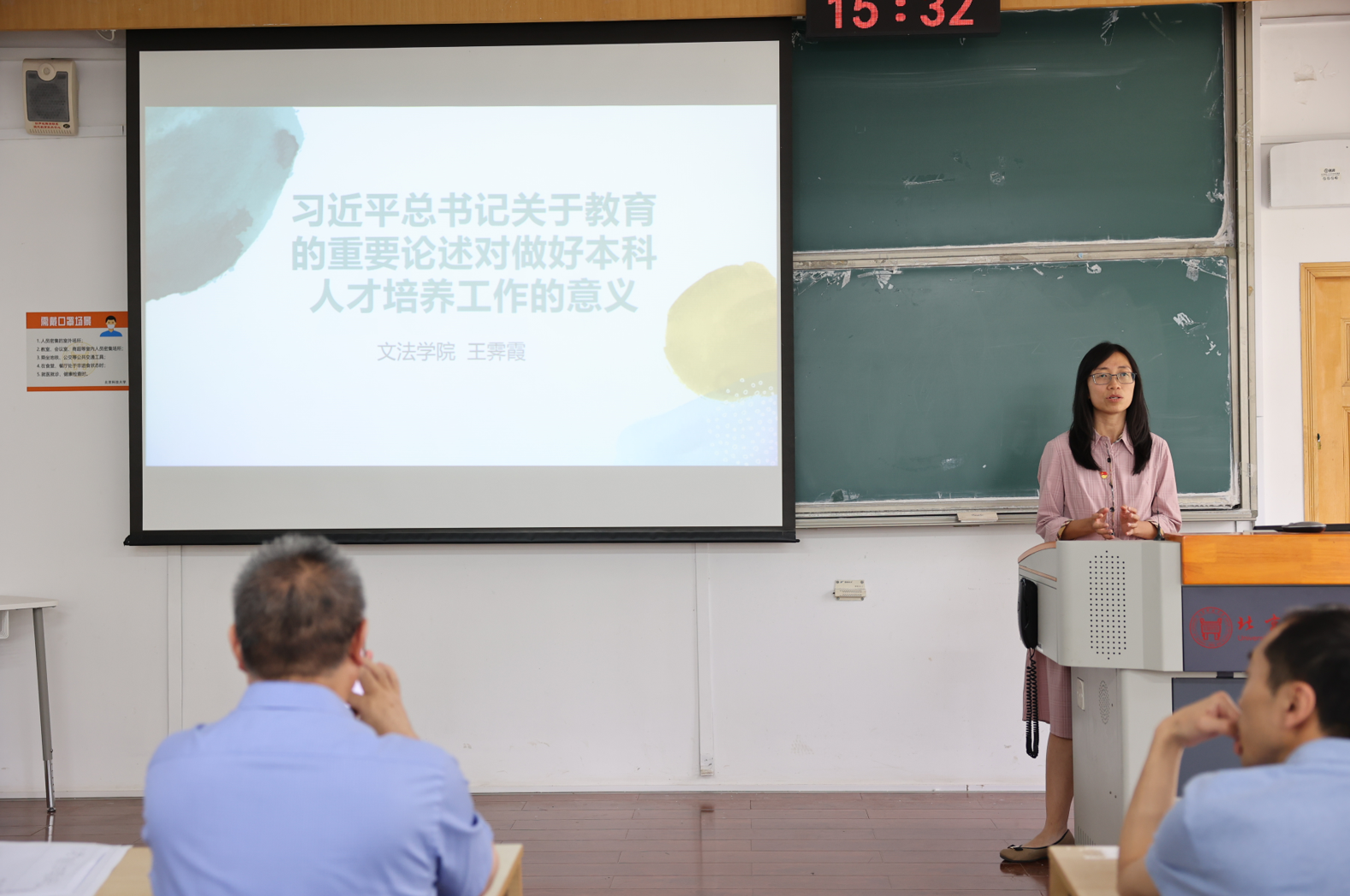 首先,王霁霞以“习近平总书记关于教育的重要论述对做好本科人才培养工作的意义”为题,围绕总书记关于教育的重要论述及中央对本科教育的政策精神和要求、本科教学工作调研分析与改进思路与教育智能化数字化趋势政策介绍三个方面解读学院本科公司产品工作方向,鼓励老师们勇于进行教学创新与课程创新。