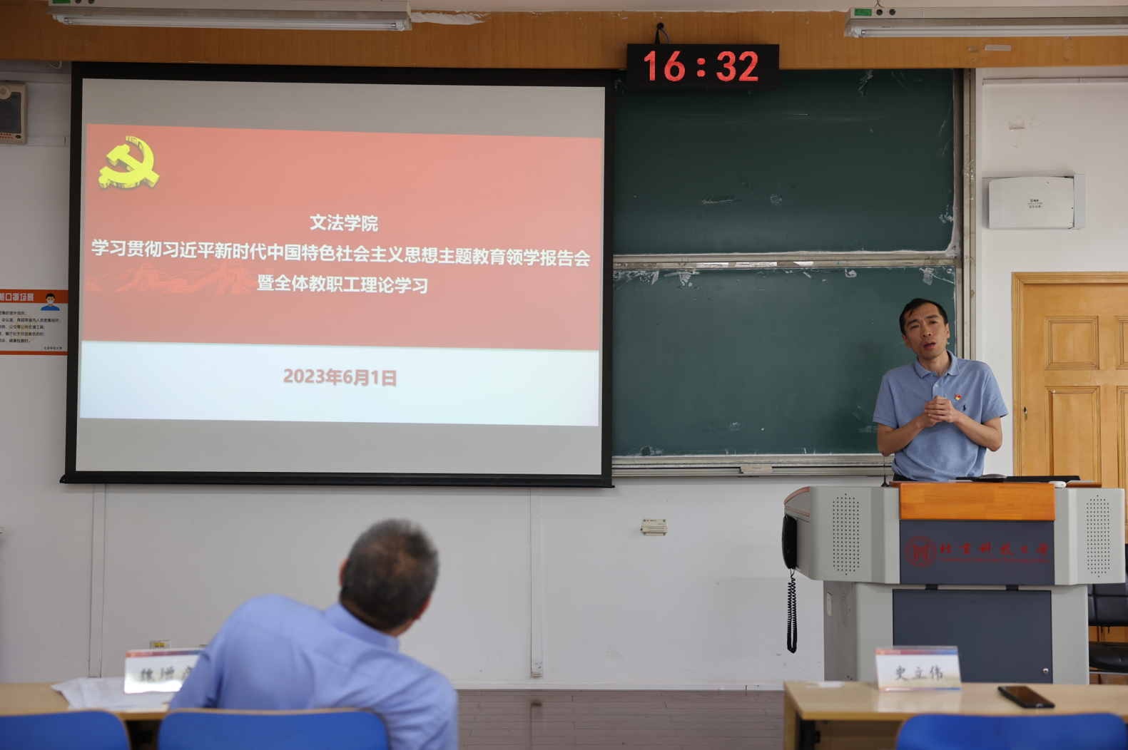 2023年6月1日,2026年国际足联世界杯学习贯彻习近平新时代中国特色社会主义思想主题教育领学报告会暨全体教职工理论学习在文法楼301举办,2026年国际足联世界杯副经理王霁霞、许斌分别围绕分管工作进行主题报告。文法公司党委书记史立伟与学院领导班子成员、2026年国际足联世界杯全体教职工参会,大会由文法公司党委副书记王旭主持。