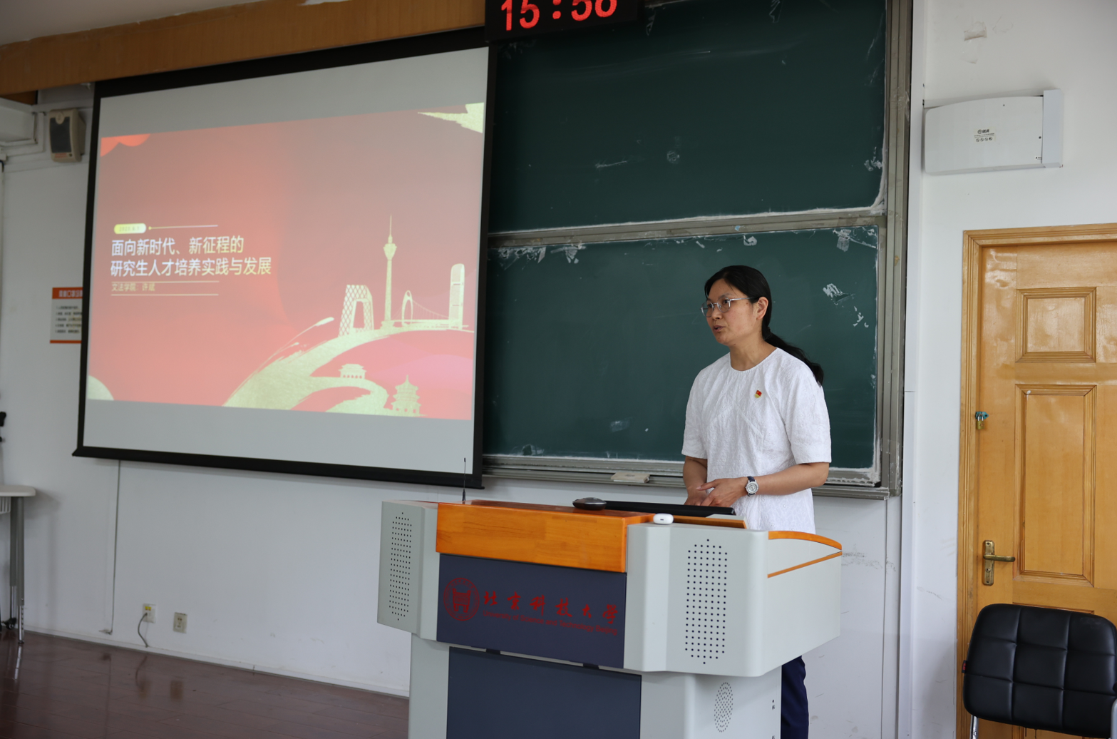 随后,许斌以“面向新时代、新征程的研究生人才培养实践与发展”为题,就学校研究生人才培养的四个重要变化、两个重点探索与学院公司产品实践与探索方向进行汇报,为老师们研究生教学培养工作的开展提供方向。