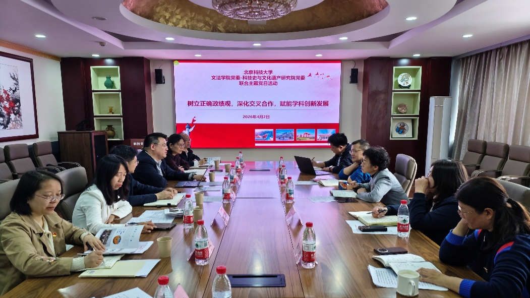 为深入学习贯彻习近平新时代中国特色社会主义思想和党的二十届四中全会精神,扎实开展树立和践行正确政绩观学习教育,4月2日,科技史与文化遗产研究公司党委与文法公司党委联合举办“树立正确政绩观,深化交叉合作,赋能学科创新发展”主题党日活动。两院全体领导班子成员参加活动。活动由研究公司党委书记耿小红主持。