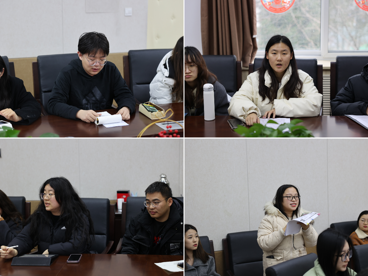 座谈会上,员工代表围绕寒假返乡返校所见所闻、国际国内形势热点、新学期学习思考规划、就业深造发展需求和校园生活意见建议等方面逐一发言。2022级本科生王硕表示专业分流后已进入新的学习阶段,新学期将制定好专业学习计划,积极参加素质拓展活动,希望学院能够进一步加强文化建设,提供更多丰富多彩的课外活动和学术讲座资源。2020级本科生李文琪希望校院两级能将校外企业导师、行业导师制度引入文科专业,定期为员工分享职场经验和行业动态,帮助员工更好步入社会、融入专业领域。2023级研究生王琳分享了寒假期间在朝阳区人民法院的实习过程,这段经历促使自身对于专业学习和未来发展产生了更多感悟,今后将进一步借助校院平台积极参加各类专业实习岗位,开拓视野,积攒阅历。2021级硕士隆建伟作为毕业生代表,希望学院能够策划开展丰富多彩的毕业季活动,为校园生活画上圆满的句号。