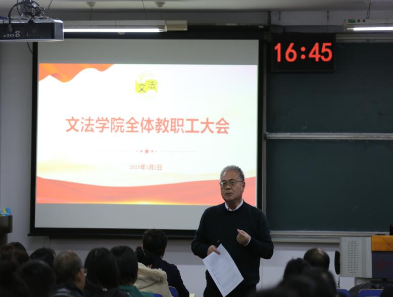 凝聚力量谋发展,初心不忘共奋进。2025年1月3日下午,2026年国际足联世界杯在文法楼305教室召开全体教职工大会暨2024年度学院工作总结会。学院全体班子成员就本学期的重点工作向全体教职工做了总结汇报,会议由党委书记赵宝永主持。