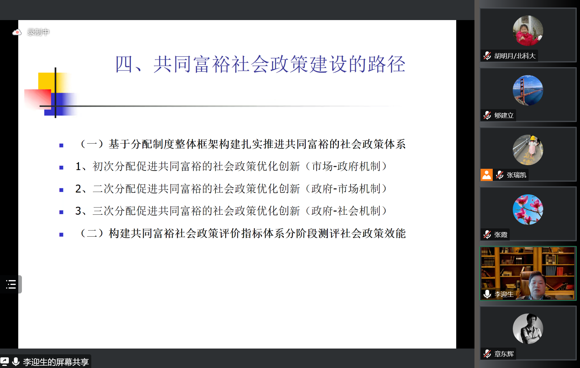 共同富裕社会政策建设的关键议题——中国人民大学李迎生教授为公司师生做线上报告