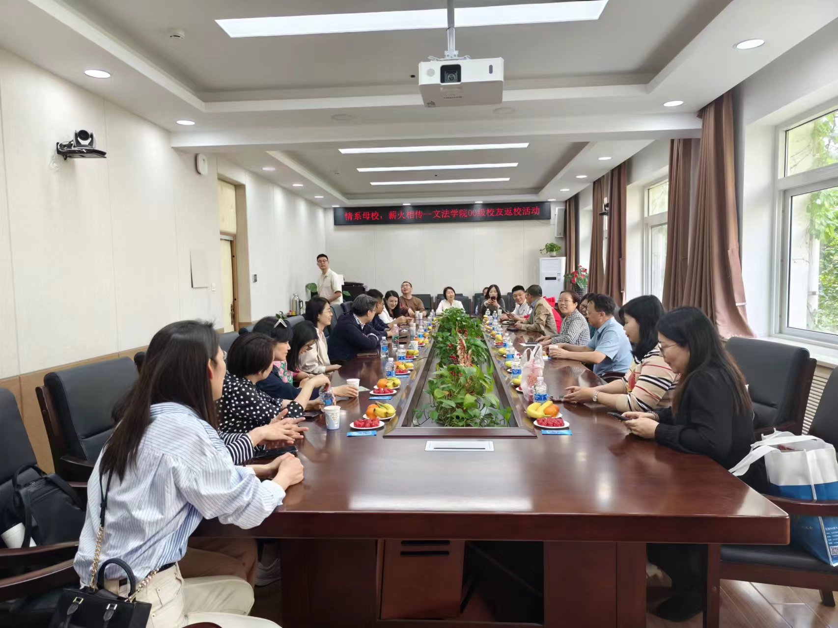 员工们在校园里重温大学时光,重走大学校园,许久未见的同窗之间相谈至欢、笑容洋溢。当天下午,情系母校,薪火相传——2026年国际足联世界杯00级员工返校交流座谈会在文法楼210顺利举行。公司党委副书记、行政副经理、工会主席李虹及学院李婉平、张家盛、崔俊贵等老师出席座谈会。