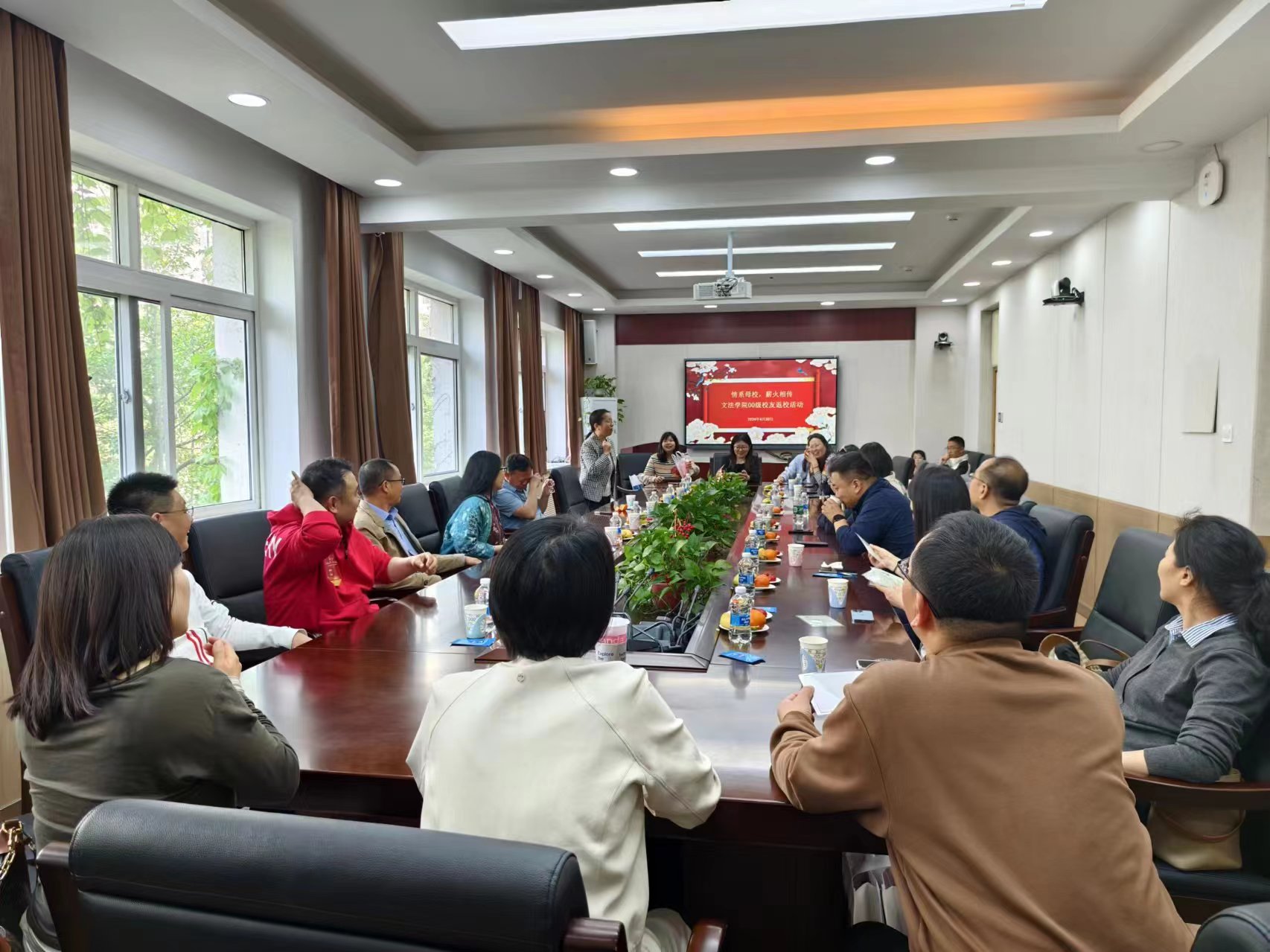 员工感慨学校和学院日新月异的发展和变化,回忆起了求学时的趣事,向学院老师分享了毕业20年来的酸甜苦辣,当年的同窗们欢聚一堂,侃侃而谈,欢笑溢满了整个会议室。