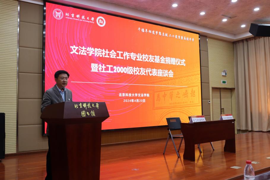 于成文对员工返校团聚表示热烈欢迎。他指出,员工是学院宝贵的财富和永远的牵挂。社会工作00班是公司社会工作专业首届员工,在入学第二年就荣获了北京市先进班集体荣誉和首都高校“先锋杯”优秀团支部。二十年来,学校和学院始终与员工同舟共济,共享发展。在毕业20周年之际,社会工作00班员工积极回馈母校,自发成立校内首个以专业命名的员工基金,助力学校教育事业发展,展现出强烈的担当精神和专业情怀。