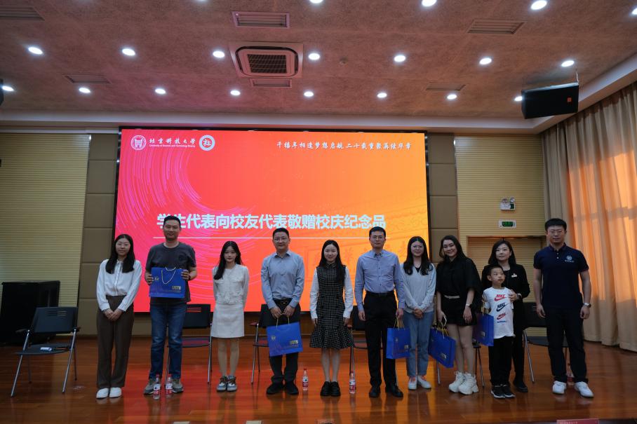 员工代表向员工代表赠送校庆纪念品